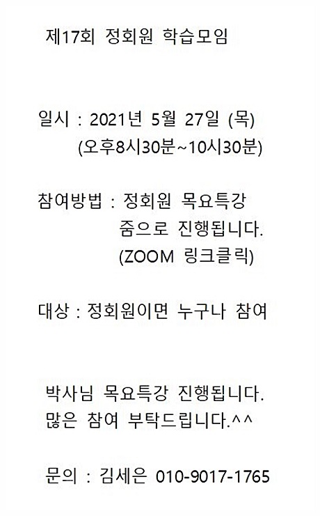 Home 공지사항 제17회 정회원 학습모임