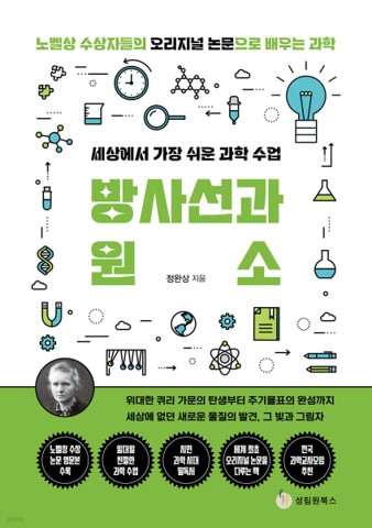 『세상에서 가장 쉬운 과학 수업 방사선과 원소』는 마리 퀴리가 남편과 함께 노벨 물리학상을 받은 최초의 논문(1898년)과 단독으로 노벨 화학상을 받은 첫 번째 논문(1898년)에 초점을 맞추었다. 두 논문은 새로운 자연 방사능 원소 두 개(폴로늄과 라듐)를 발견한 내용이다. 이와 관련하여 인공 방사선이지만 최초의 방사선인 X선을 발견한 뢴트겐의 논문과 그것을 있게 한 방전관 발명의 역사를 다루었고, 방전관에서 찾아낸 톰슨의 전자 발견 이야기도 곁들였다. 여기에 등장하는 노벨상 수상자들이 주로 실험 물리학자이므로 수식보다는 실험 장치와 실험 방법에 중점을 두었다. 책의 뒤쪽에는 논문 영문본을 실어 오리지널 논문에 대한 간접 체험을 할 수 있도록 하였다.