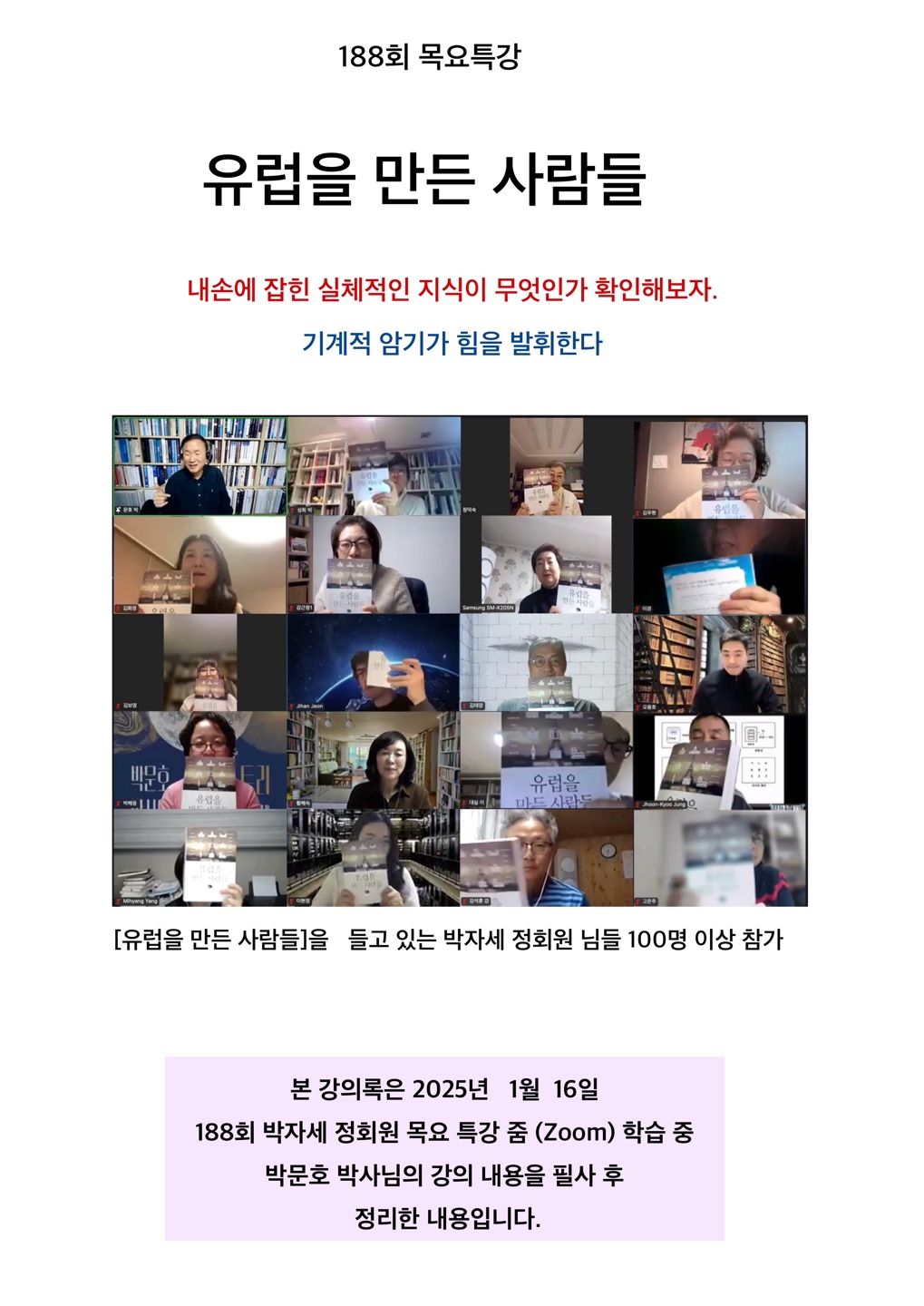 제 188 회 목요특강 [ 유럽을 만든 사람들 ] 수업후기