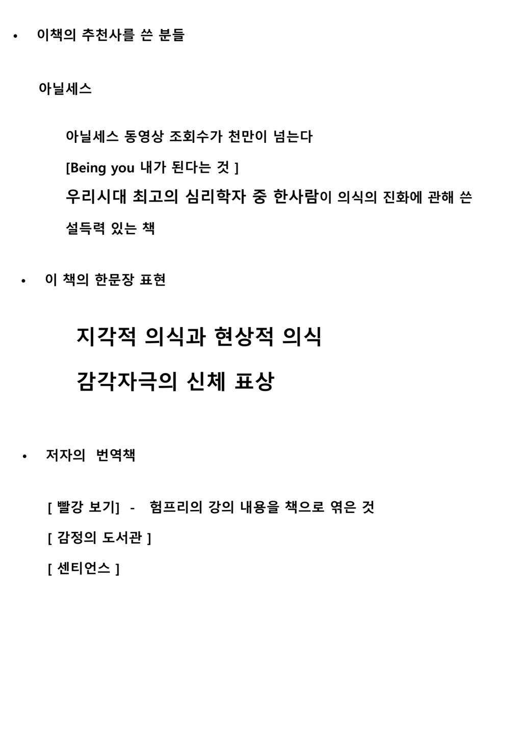 2. 이 책을 읽고 ‘맹시’ 가 너무 놀라웠어요. 모든 것이 보이는 눈 먼 원숭이가 될 것인가. 보이지는 않지만 모든 것을 느끼는 존재가 될 것인가 …  책 챕터 7.보이지 않는 시각/ 개구리의 시력으로는 제대로 살아갈 수 없다고 다시 시각장애인의 삶으로 돌아간 사례가 무척 인상적이었습니다. 의식에 대해서 평생을 연구한 노학자의 집념이란.. 좋은 책소개와 강의해 주신 박사님과 이렇게 대단한 후기를 올려 주시는 선생님 모두 감사합니다  (얌전히 인사)