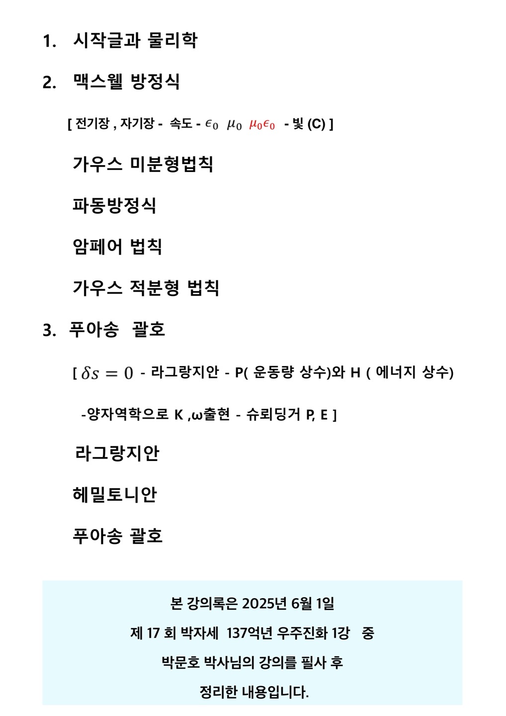 Home 수업후기 제 17회 137억년 우주진화 1강 – 맥스웰 방정식에서 양자역학까지 수업후기